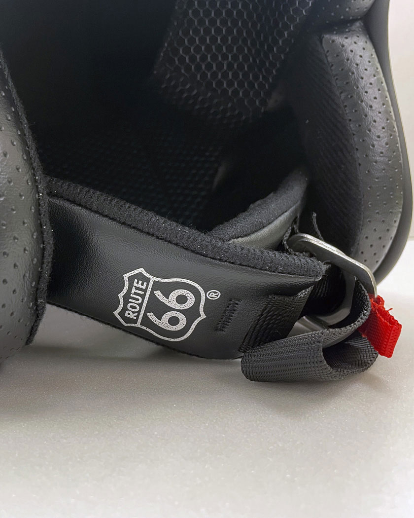 シールドとバックベルトのボタンには66ロゴ刻印オリジナルドットを使用。